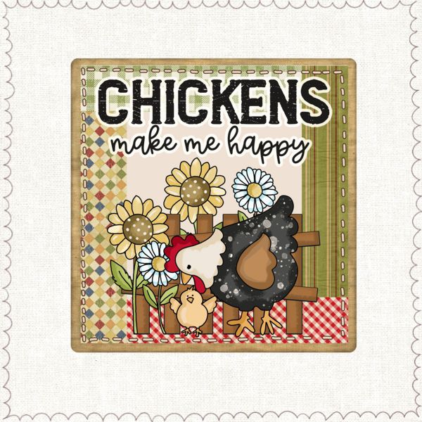 Chickens Happy es una lámina llena de ternura y espíritu country que transmite alegría, calma y amor por lo cotidiano. La escena, protagonizada por una gallina y su pollito entre flores y una valla de madera, se acompaña del mensaje “Chickens make me happy”, que resume a la perfección esa felicidad simple que aporta la vida rural.