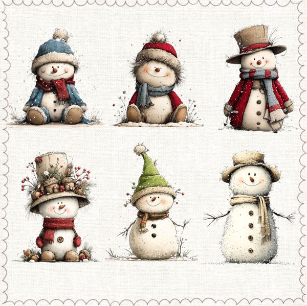 “Dulce Nieve” reúne seis muñecos de nieve irresistibles, cada uno con su propio estilo y personalidad. Desde gorritos de invierno, bufandas mullidas y chaquetitas de colores, hasta sombreros rústicos adornados con ramas y bayas… cada muñeco aporta un toque único de dulzura y calidez navideña.