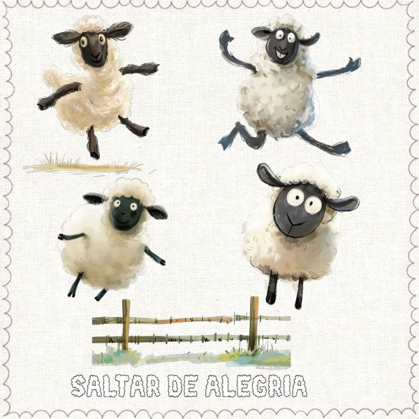 • Incluye varias ovejas en salto, una valla y el texto “Saltar de Alegría”